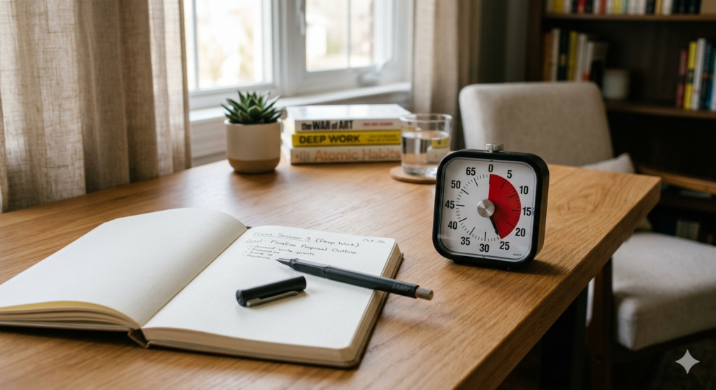 To further protect your concentration during deep work sessions, remove your phone from your desk entirely. Using a physical analog timer to track your 45-minute work sprints is highly effective. It provides a visual countdown without requiring you to look at a screen that might tempt you with fresh notifications.